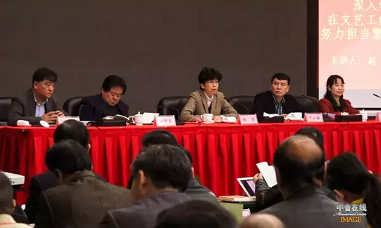 赵实在会上作了题为《深入学习贯彻习近平总书记在文艺工作座谈会上的重要讲话精神,努力担当繁荣发展社会主义文艺新使命》的报告,指出习近平总书记的重要讲话深刻论述了文艺与时代、文艺与人民、文艺与生活、文艺与市场、文艺与价值观等带有根本性、时代性的重大理论和现实问题,是新形势下指导我们做好文艺工作的科学指南和行动纲领,是我们学习马克思主义文艺理论的最新最好教材。学习好、贯彻好、落实好总书记的重要讲话精神,是当前和今后一个时期文艺界的重大任务。