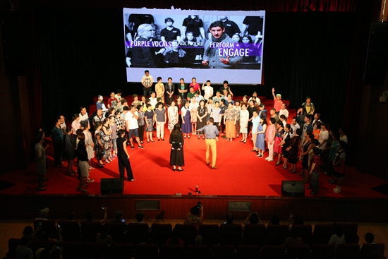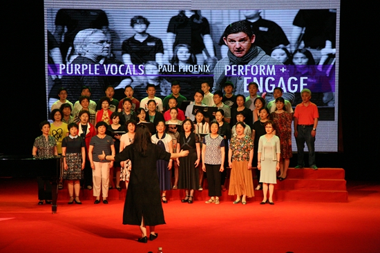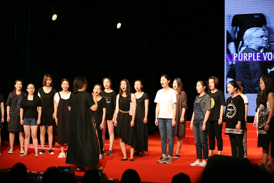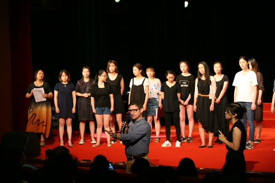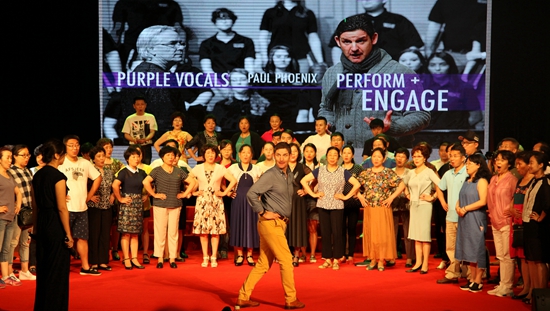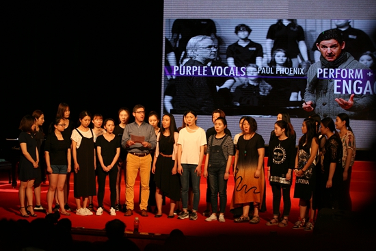 讲座中,保罗先生现场邀请观众上台互动,运用丰富多样的发声训练,成功地将参与者带入合唱情境,台上台下融为一体,很好的诠释了合唱艺术的广泛参与性。江苏广电总台合唱团、南艺萌女生合唱团是本次讲座的示范团队,保罗先生针对团队特点,从歌唱者的口型、吐字、音准、节奏,作品强弱对比、乐句乐段处理、和声练习训练等环节循循诱导,不厌其烦,让人感受到保罗先生对合唱事业的孜孜追求,对艺术要求的一丝不苟。